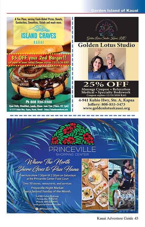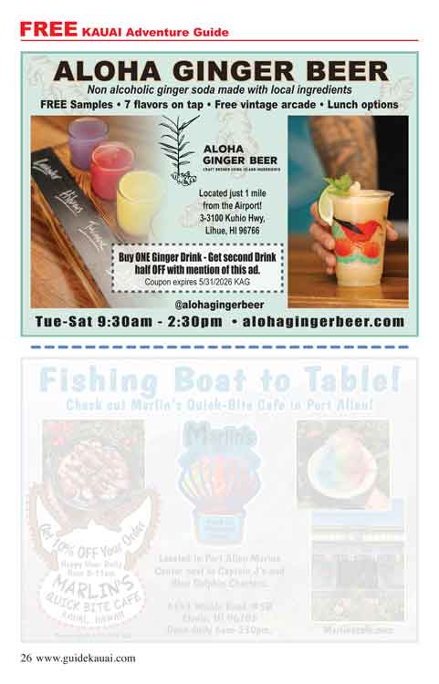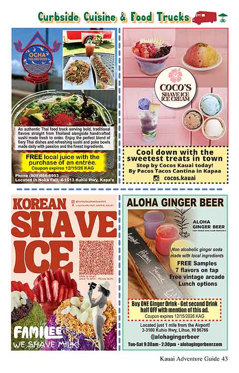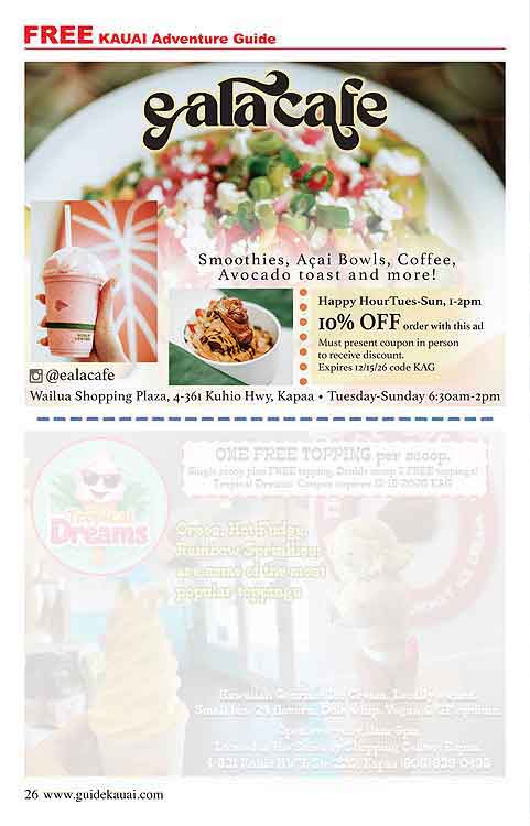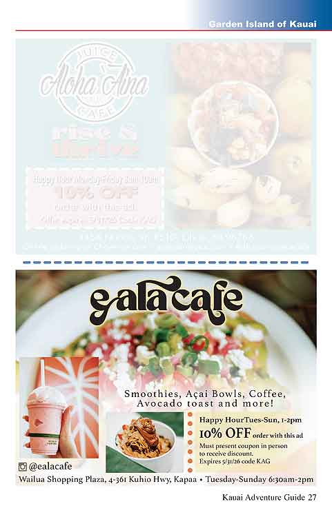 Kauai Adventures Guide Magazine for Activities, Dining, Services and Shopping!