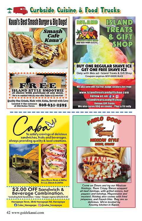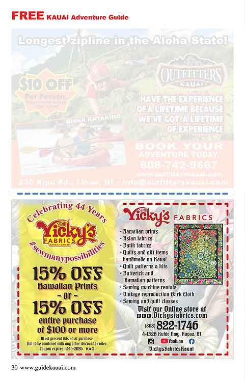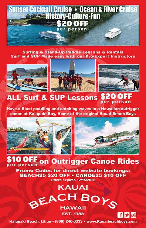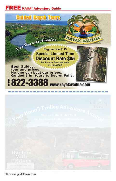 If a offer’s date has expired you may contact the advertiser directly online or by phone. Tell them you saw their ad on our Kauai Adventure Guide website. They may still honor the offer or have another special offer available.