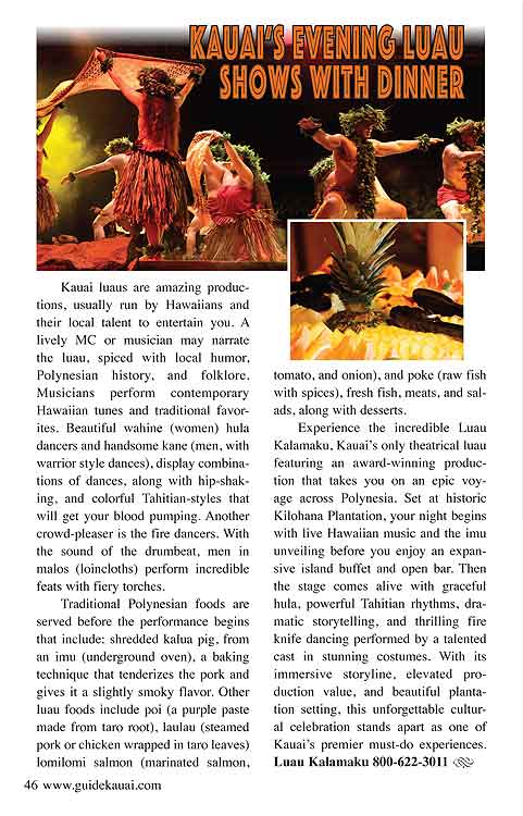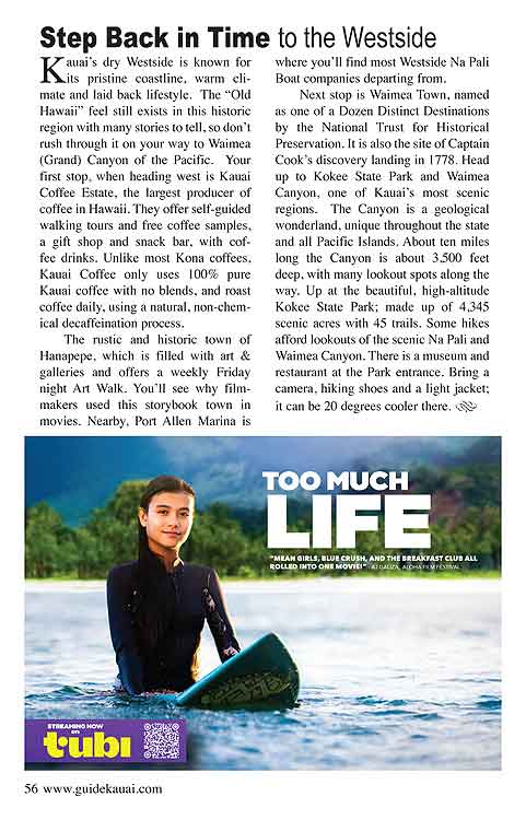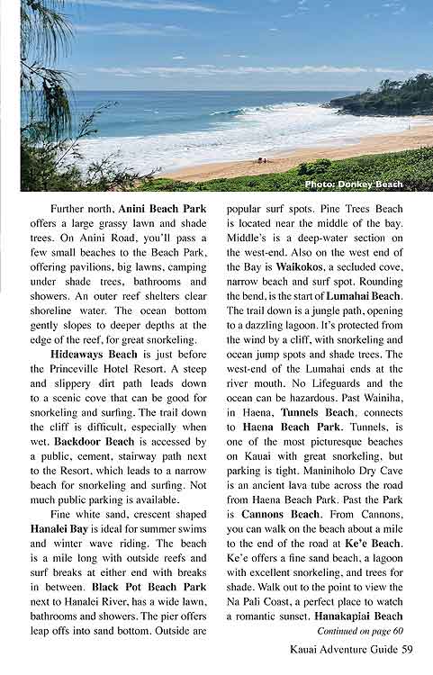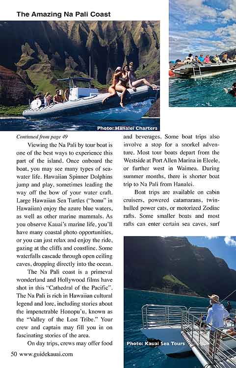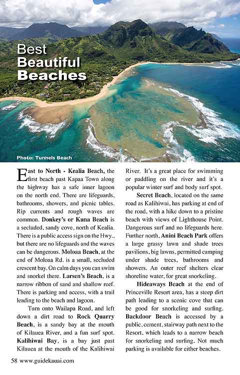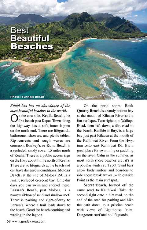 Great travel articles, beautiful full color photos and maps of Kauai.